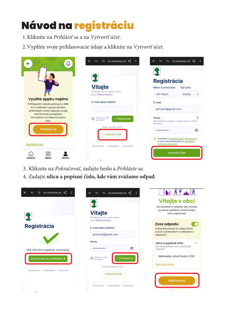 Aplikáciu nájdete na Google Play a App Store pod názvom „Jasenov – KOSIT“ alebo ju môžete stiahnuť do mobilu cez uvedené QR kódy. Po stiahnutí a vytvorení konta domácnosti podľa priloženého návodu musíte počkať na jeho overenie. V prípade, že vám neprišiel e-mail s overovacím kódom, odporúčame skontrolovať priečinok spam. Následne po prihlásení do aplikácie je potrebné skontrolovať a potvrdiť údaje vo vašom profile.
