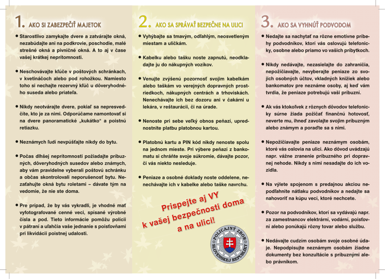 - zdržte sa takého konania, ktoré by mohlo cudziemu človeku napovedať, kde máte uložené svoje úspory alebo cennosti,